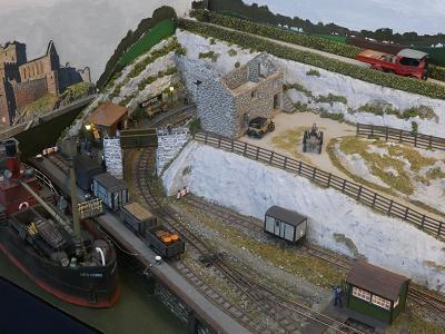 Fidlas Quay The layout represents a remote narrow gauge branch line on the Welsh side of the Severn Estuary. Locally produced iron goods await shipping on the next high tide while a couple of elderly Railcars provide a basic public transport facility to the sparse local population. | ![]() ![]() | |