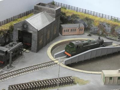 Wincanton Wincanton MPD is a small motive power depot based loosely on the Somerset and Dorset. The period of the layout is circa. 1960 and most of the stock is either former London Midland Scottish or British Railways standard. Whilst the Somerset and Dorset was always a steam line, occasionally green era diesels appear, usually on the days of Wincanton races, which also brings visiting steam engines in for servicing. The layout is modelled in 2mm scale and the track is 9mm code 40 Finetrax. This accepts standard modern N gauge locomotives to be run without modification. The turntable is Peco, which has been modified to accept electrical power and the layout operation is analogue. | ![]() ![]() | |