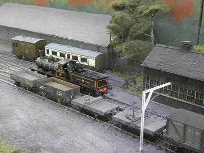 Fidlas Quay The layout represents a remote narrow gauge branch line on the Welsh side of the Severn Estuary. Locally produced iron goods await shipping on the next high tide while a couple of elderly Railcars provide a basic public transport facility to the sparse local population. | ![]() ![]() | |