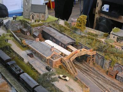 Hollow Fosse is a fictitious location in the south-west of the Cotswolds region. The layout represents a small rural branch line that connects with the former Midland and South Western Junction Railway. After being absorbed into the Great Western Railway (GWR) is still provided a useful link between the midlands and the south coast. Nationalisation allowed the mainline and its branches to settle into the slow rhythm of the countryside that it served. The layout endeavours to recreate the atmosphere of the late 1950's and early 1960's. The buildings many of which are modelled on actual structures, depict a typical Cotswold location. Locomotives and rolling stock are still a mixture of previous railway groups, GWR (Western), Southern and Midland including mixed trains which rationalised train movements. The layout which is L shaped has a dimensions of 5 feet by 3 feet and is operated from the rear of the 5 feet length. It is modelled on a 3mm to 1 foot scale, Triang TT. | |